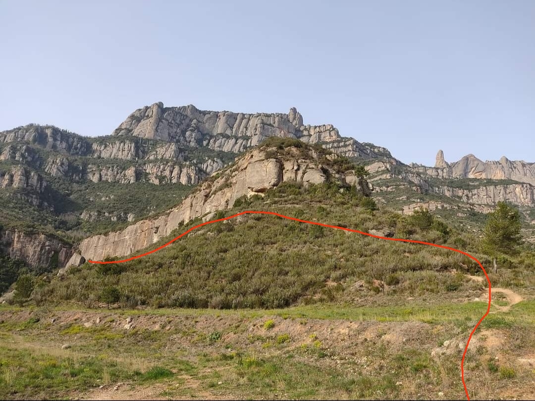 Cada certs metres es troben petits corriols d'accés a diversos trams de paret,ja que per aquí hi ha una zona concorreguda d'escalada esportiva.